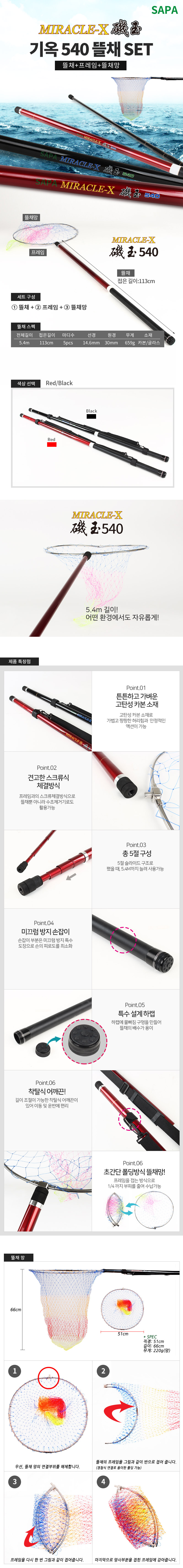 낚시뜰채세트 뜰채망 폴딩뜰채망 (블랙/레드)
